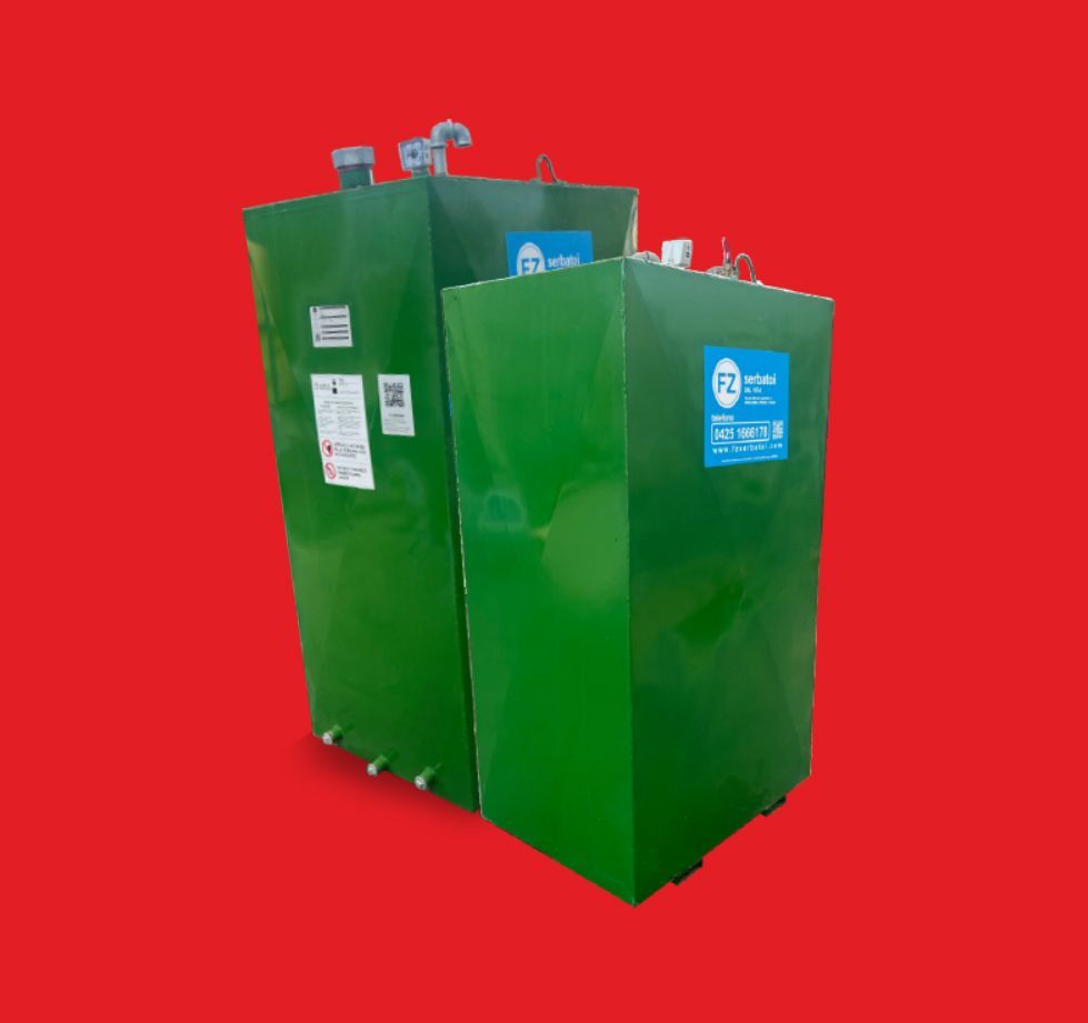 Il serbatoio da 1000 litri è progettato per lo stoccaggio sicuro di carburante, con predisposizione per il collegamento diretto a generatori di corrente.
